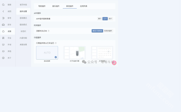 插件的大小、内容与位置均可自由调整,主界面会展示三个卡片,其中一个固定用于显示导航,另外两个则可分别展示音乐、全部等内容。