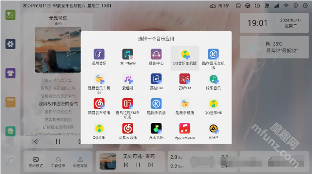 支持汽水音乐、洛雪音乐等符合安卓规范的音乐播放器,新添通用音乐插件,进一步丰富车载音乐体验。