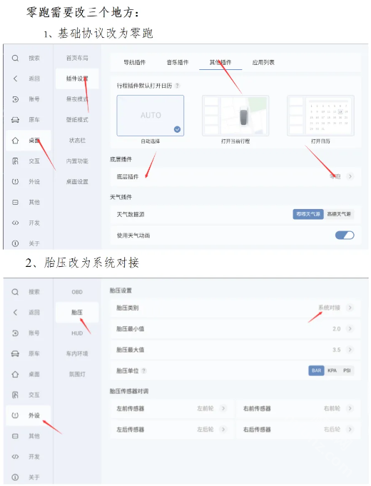 新增零跑T03对接协议:可对接零跑T03车型,具备原车胎压显示功能、车门状态显示功能、主题随灯光切换功能以及方控操作支持。