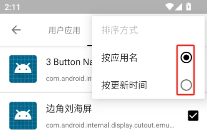 可以点击右上角的【...】按钮,按照应用名称或者更新时间进行排序。