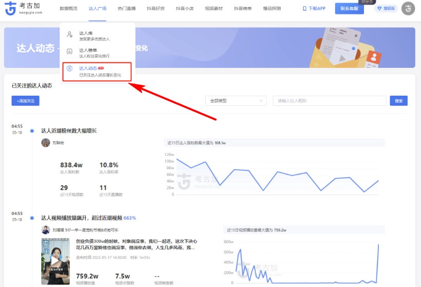 达人动态:一键掌握达人动态增长变化
