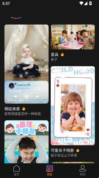 底下的“模版”可以挑选各种漂亮的视频制作模版