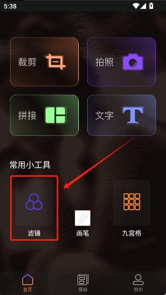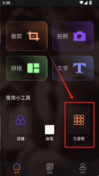 首页这里有裁剪、拍照、拼接、文字等多种功能供大家使用