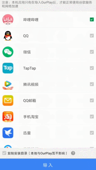 请打开Ourplay应用,将已安装完成的Gamestoday导入其中(特别提醒:切勿直接在手机上打开Gamestoday,务必通过导入到Ourplay的方式来启动它)。