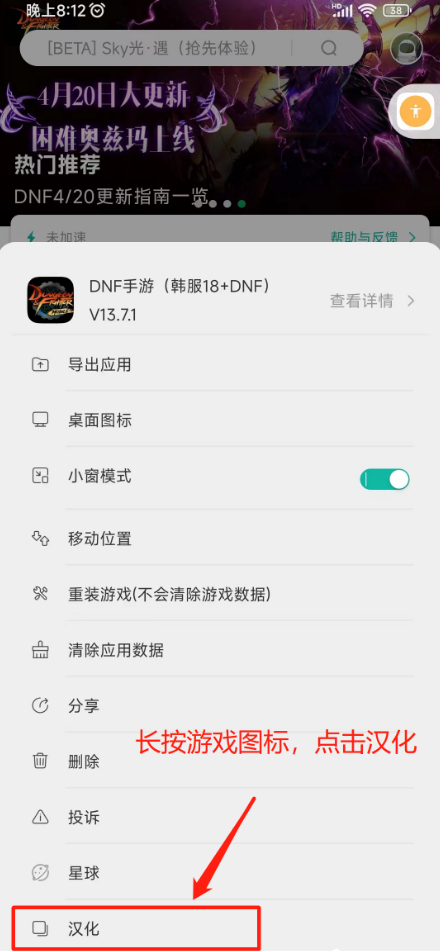 开始汉化啦,下面这个方法能一键完成汉化!完全免费,也不需要安装任何插件。你只需要长按游戏图标,然后点击“汉化”按钮就可以了。