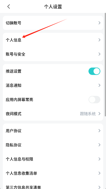 进入个人信息页面:在设置菜单里点击“个人信息”选项,即可进入信息编辑页面。