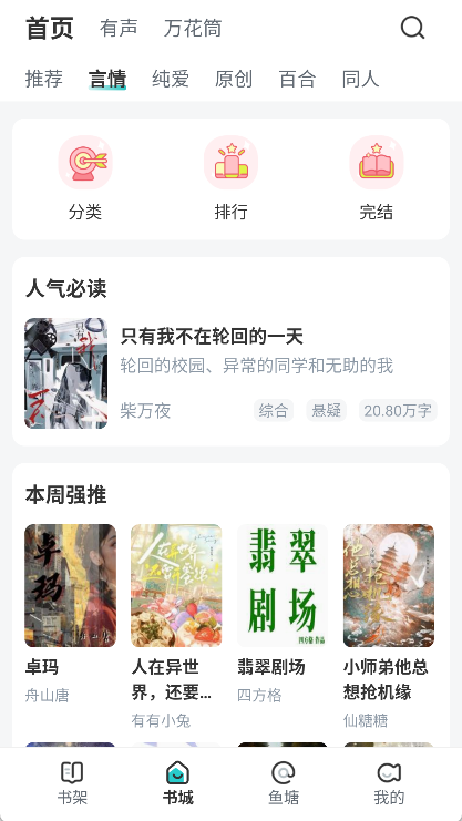 全面类型:提供言情、穿越、玄幻、都市、青春、校园、总裁、耽美等多元化小说类型。