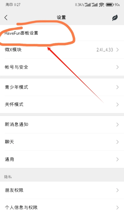 打开微信设置页面,您将看到如下所示的面板。