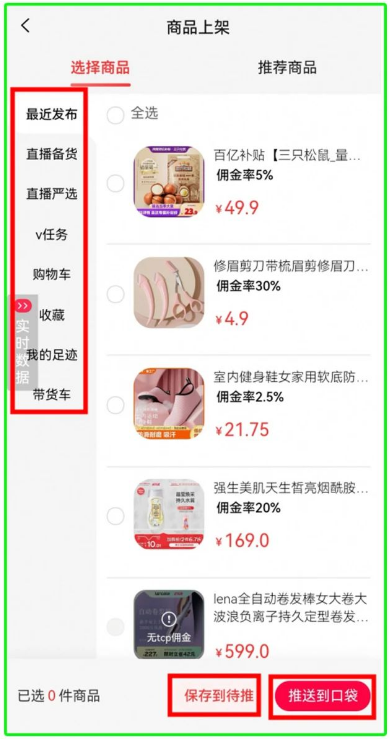 在根据实际需求挑选好待上架的商品后,你可以选择点击【保存到待推】按钮,也可以选择点击【推送到口袋】按钮。