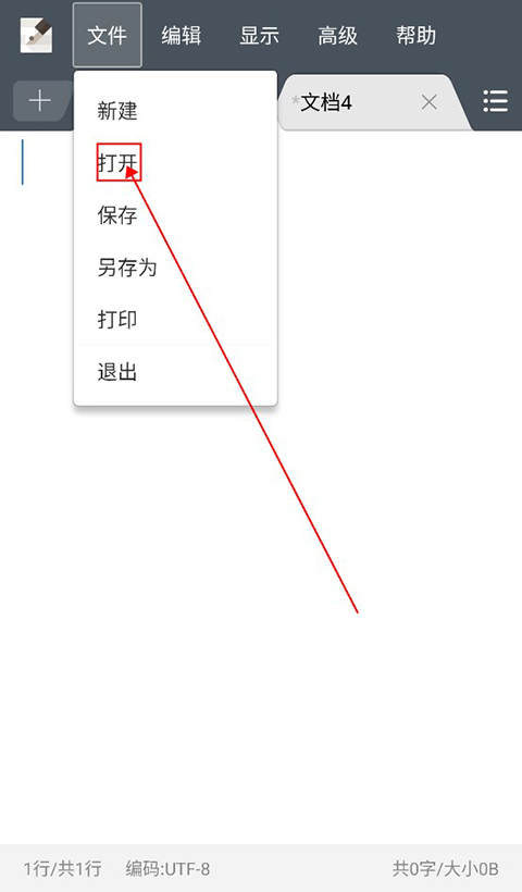 若用户希望导入已有的文档,可点击左上角的“文件”选项,再选择“打开”功能。