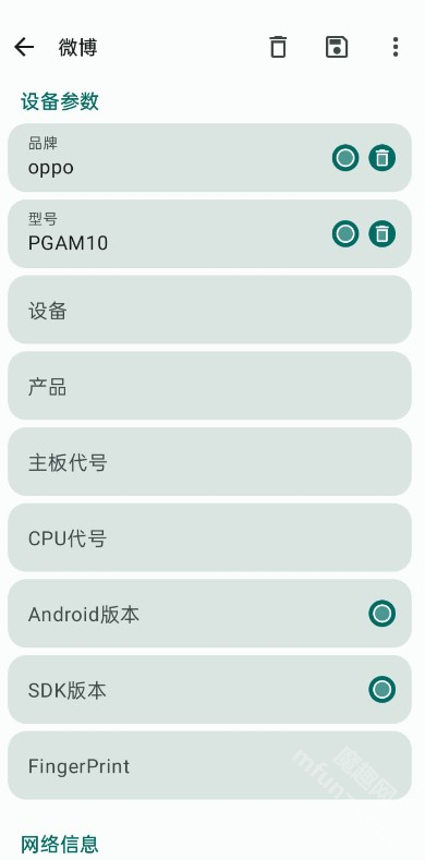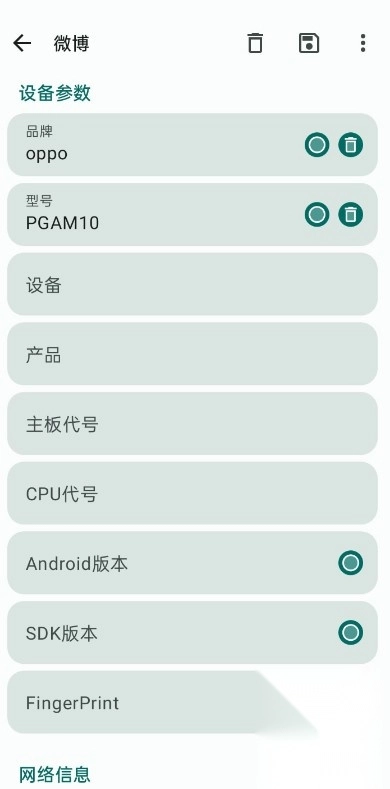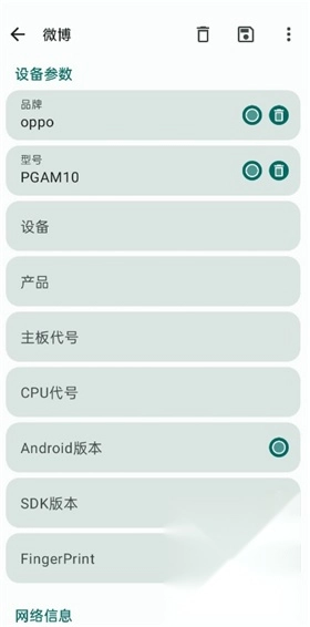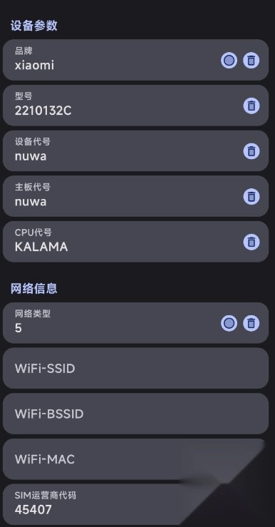 模块修改功能支持对品牌、型号、网络类型、WiFi信息、SIM运营商等多种设备信息进行修改。