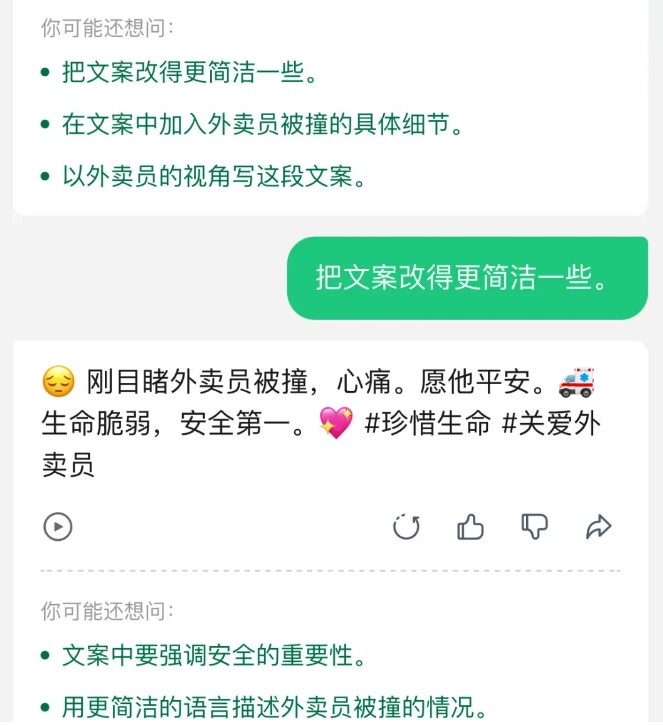 若觉得我给出的文案字数偏多、不符合你的风格,只需点击提出你的需求,元宝会反复修改这段文案直至你满意。