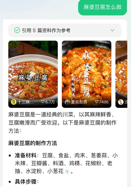 c.怎样烹制美味佳肴:无论什么菜品都能询问,不仅会提供详细步骤,就连做菜的相关视频也能为你找到。
