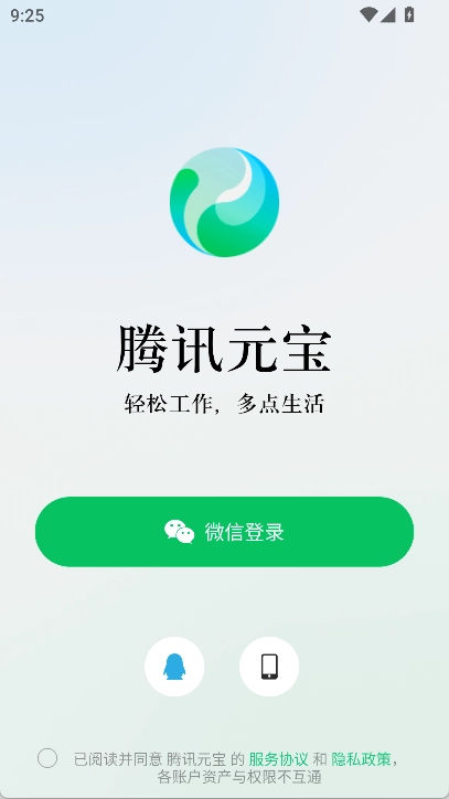将腾讯元宝安装到手机后,可通过微信、QQ或手机号完成登录操作。