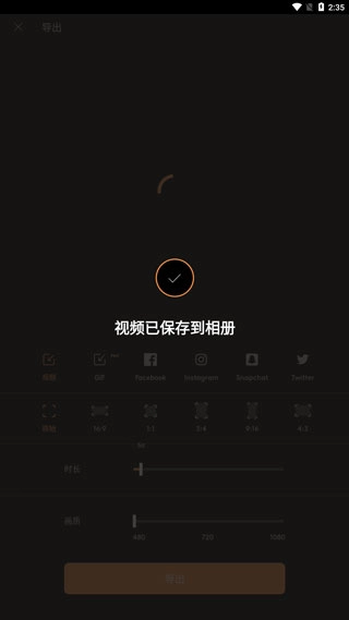 选择导出的视频时长,画质等;