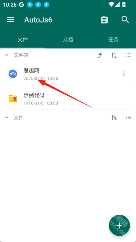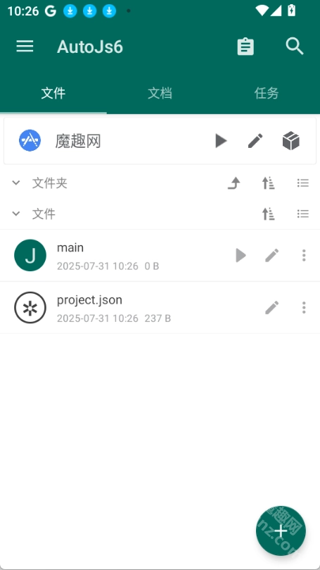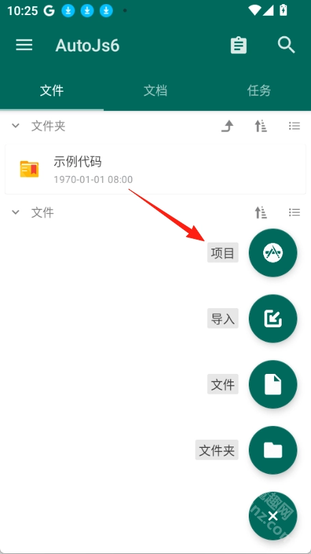 打开AutoJs6应用后,点击右下角的加号按钮,然后选择项目。