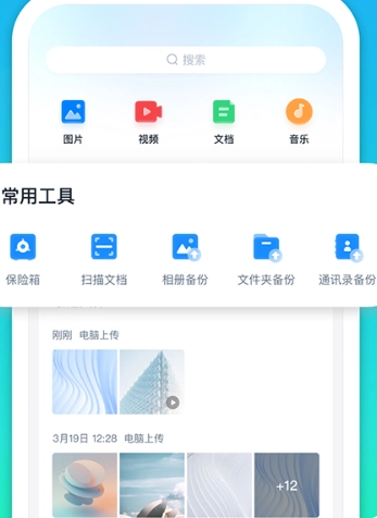 打开360安全云盘后,首页上呈现着不少常用工具。