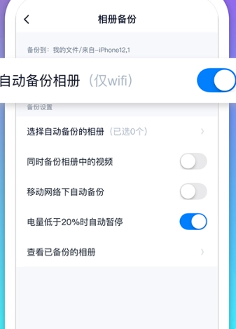 点击相册备份按钮,可以设置自动备份相册。