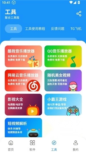 切换到底部栏目的“工具”板块,找到“酷我音乐播放器”并点击进入。