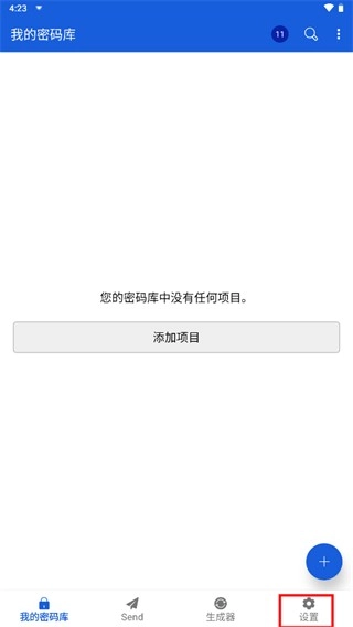 导航到“我的密码库”选项卡,接着选择“添加项目”。