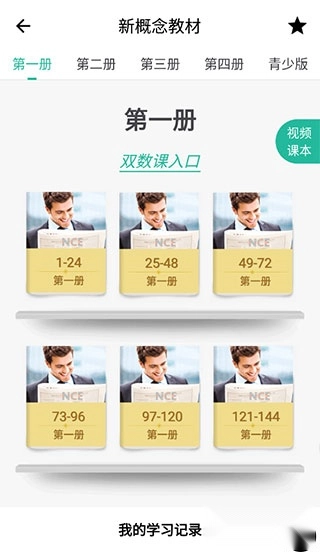 要是打算学习新概念英语,您可以在首页点击“新概念”,接着挑选对应的册数和教材。