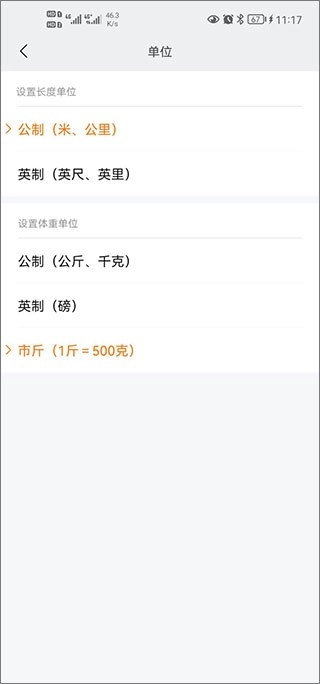 配对成功后,找到底部的“我的”选项,进入后点击设置,把单位调整为自己常用的计量单位。
