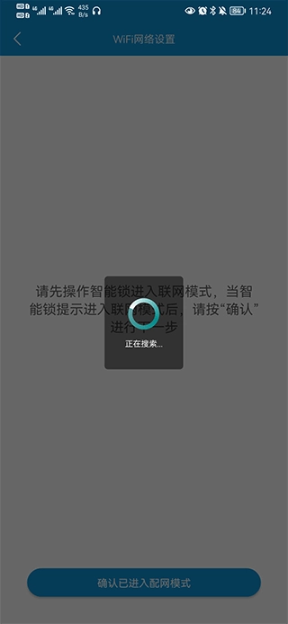四、按照提示将智能锁切换至联网模式,之后只需等待搜索到设备并完成连接即可(需注意门锁与手机必须处于同一WiFi网络环境下,不然手机将无法搜索到该设备)