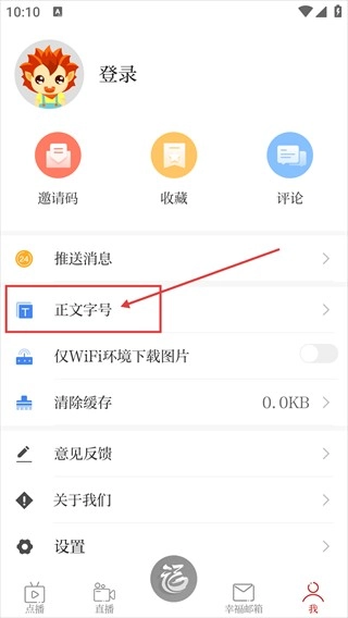 进入个人页面后,可看到【收藏】【评论】等功能,找到并点击【正文字号】选项,就能进入字号调整界面。
