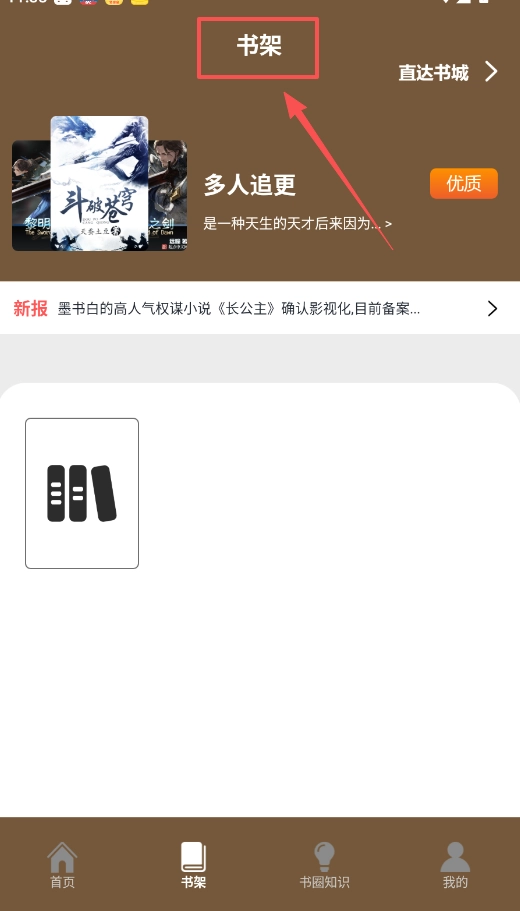 一、打开软件后,“书架”页面便是你的阅读阵地,这里展示着你正在追更的小说,还有可能符合你喜好的“优质”推荐内容。