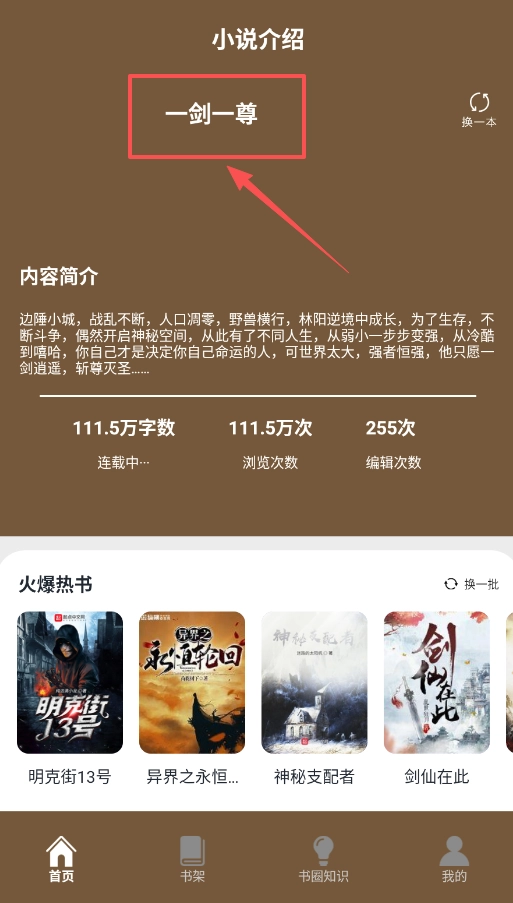 二、当选中一本书(比如《一剑一尊》)后,你将进入该书的介绍页面,这里的内容简介与关键数据是判断是否选择阅读的重要参考依据。
