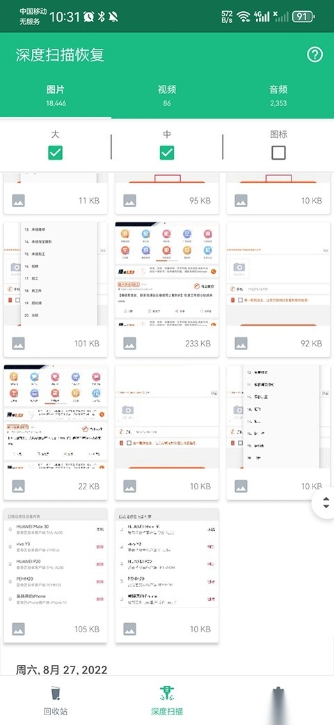 推荐用户先浏览扫描结果里的图片缩略图,要是图片清晰度达标,就能直接把它恢复到本地设备里保存。