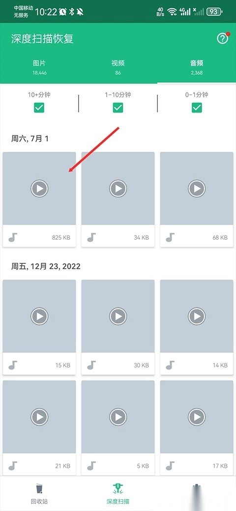在软件的深度扫描文件中长按一个想要删除的文件。