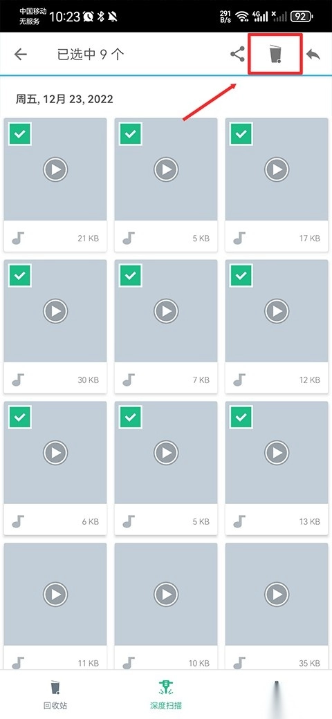 接下来会进入可编辑状态,使用者能够一次性选中多个待清理的文件,再点击界面右上角的删除图标完成操作。