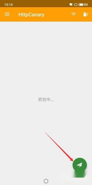 先启动小黄鸟(HttpCanary)应用,接着点击界面右下角的小飞机图标。