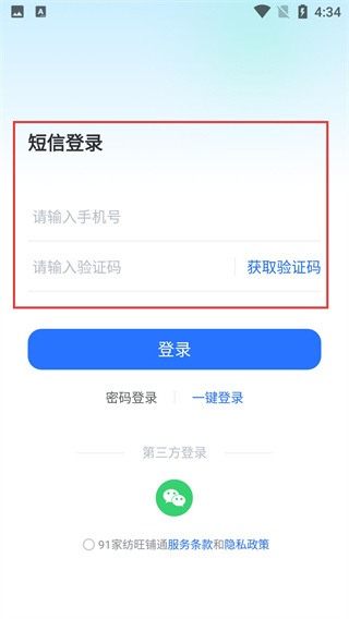 进入短信登录界面时,需要填写“请输入手机号”这一栏,接着点击“获取验证码”按钮,之后输入“请输入验证码”;此外,也可以选择一键登录等其他登录方式。