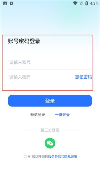 进入账号密码登录界面后,填写“请输入账号”和“请输入密码”即可完成登录,也可以选择切换到其他登录方式。