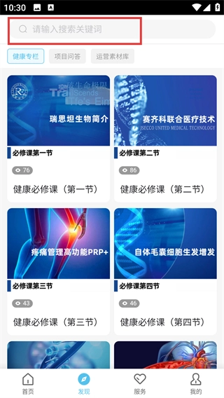 在发现页面的搜索框里输入关键词,就能快速筛选出目标健康内容,让浏览范围更精准。