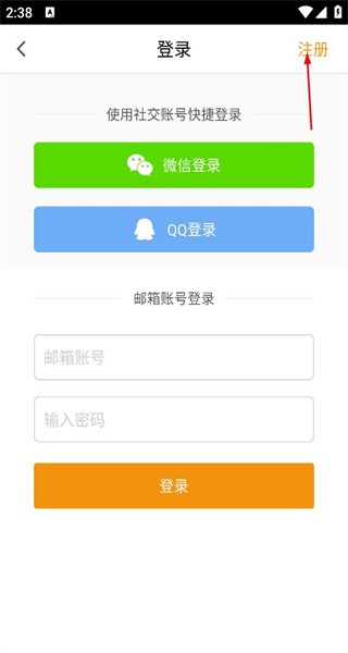 进入登录界面后,能看到微信登录、QQ登录、邮箱账号登录等多种登录方式,点击注册按钮即可进入相应的账号注册操作页面。