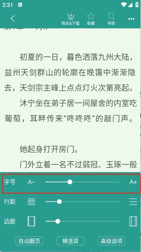 进入阅读页面之后,可以对阅读页面进行各种设置。