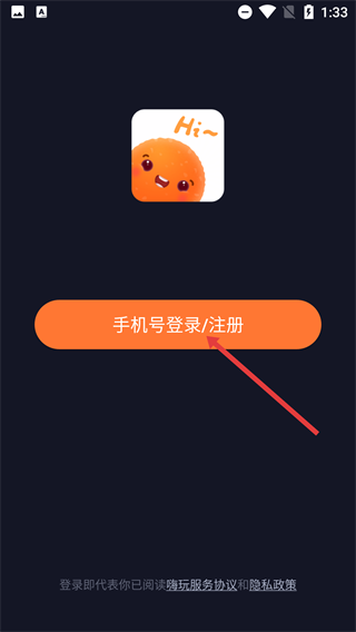 在“嗨玩”主界面找到并点击【手机号登录/注册】按钮,即可进入手机验证码登录的操作页面。