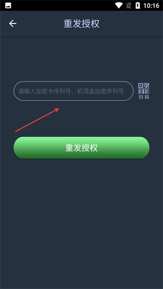进入【重发授权】页面,输入【加密卡序列号-机顶盒加密序列号】(也可扫码),点击【重发授权】按钮即可完成授权操作。
