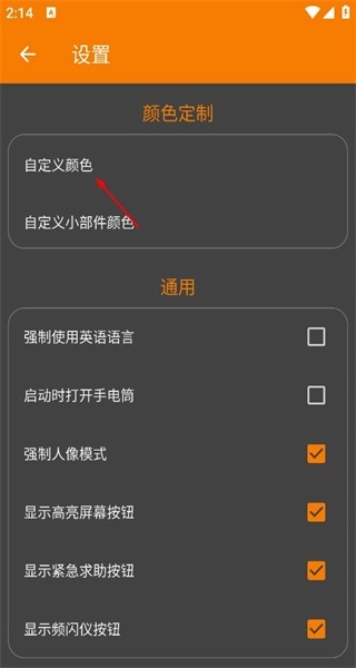 进入设置界面后,找到并查看颜色定制以及通用类相关选项,接着点击自定义颜色选项,即可进入对应的颜色设置操作界面。