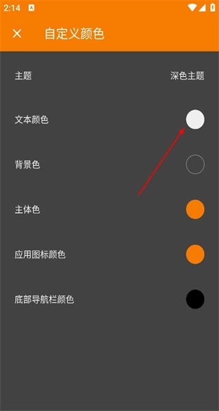 进入自定义颜色页面后,会看到文本颜色等多种颜色设置选项,点击文本颜色即可进入对应的颜色选择界面。