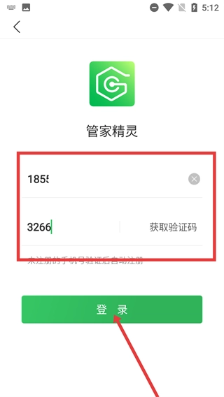 在【管家精灵】登录页面输入手机号,点击【获取验证码】并填写验证码后,点击【登录】按钮,若该手机号未注册,系统会在验证通过后自动完成注册流程。