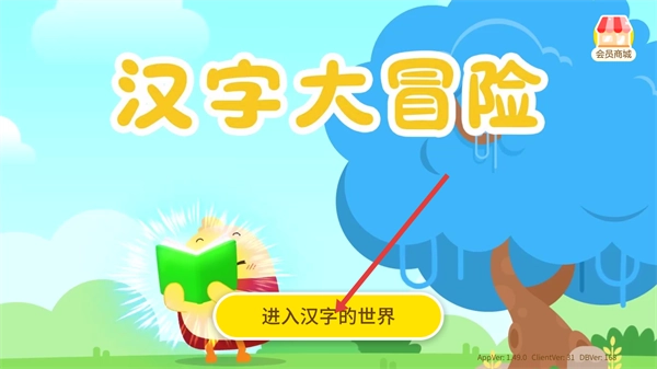 点击【进入汉字的世界】按钮,即可开启【汉字大冒险】的学习流程,进而进入游戏化的汉字认知环节。