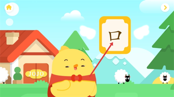 查看页面上呈现的汉字【口】,进入这个汉字对应的学习场景,开启与该汉字相关的认知学习内容。