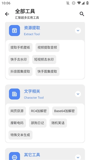工具类应用里包含了大量实用的小工具,像音乐搜索、头像大全之类的都有。