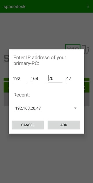 在电脑上安装好spacedesk软件后,在同一局域网内,软件内会自动搜索到此电脑,如果没有搜索到,也可以点击中间的加号,进行添加,ip地址为电脑软件中显示的ip;