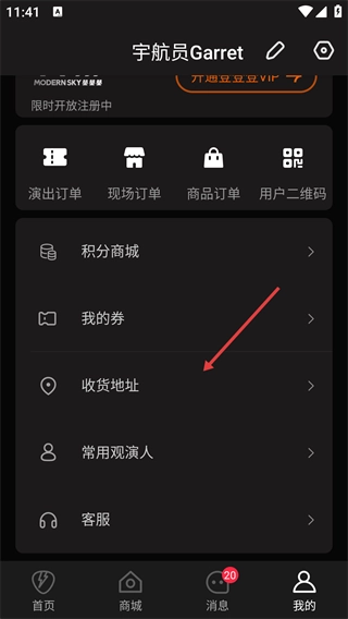 选择【收货地址】选项,进入地址管理页面。