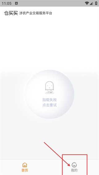 在【仓买买-涉农产业交易服务平台】的界面里,点击底部的【我的】入口,就能进入个人中心页面。